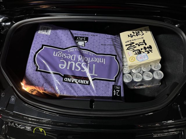 這是後箱空間,好市多衛生紙+一箱紅牛後就只剩零散空間能放了