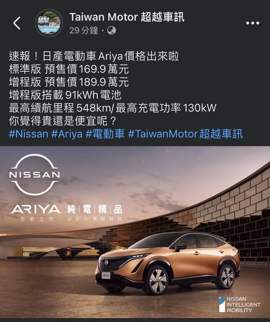 → sagat666: 因為日本售價本來就比較貴,日本官網ARIYA 2WD的兩個版 07/01 15:10