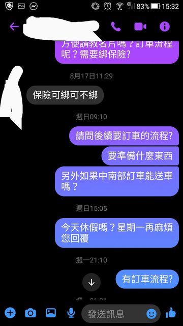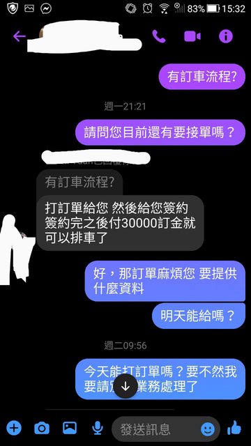 : 裡面是說17萬能做 後來問要怎麼付款訂車開訂單就一整個沒消息回很慢