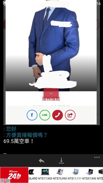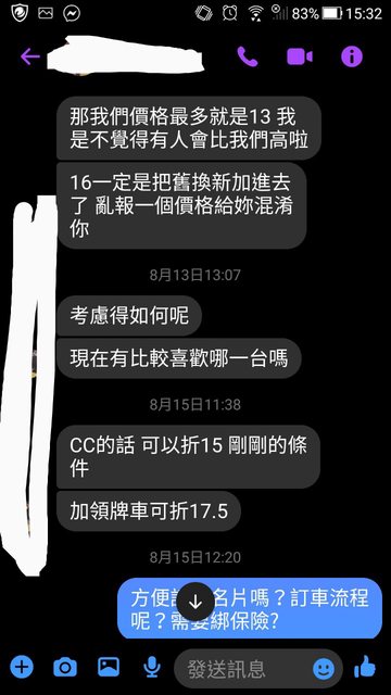 : 中部是我朋友介紹的業務,他有領牌車 CC汽油尊爵 這價格超出我朋友預算