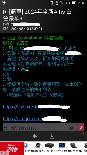 : 稍微搜尋一下菜單分享ALTIS神車的菜單,後續接到不少業務主動報價
