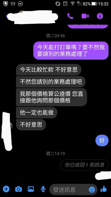 : 馬上打電話給該業務,就說這兩天無法出單 價格他算一下跟公司確認後再給我