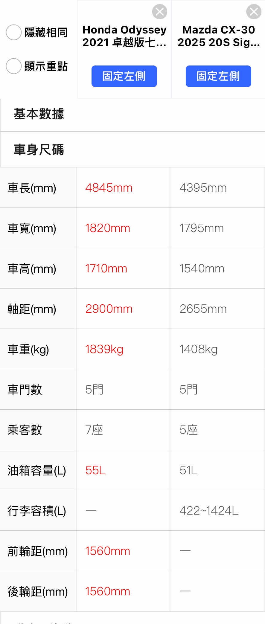 推 afune12369: cx30 高度1540mm、odyssey 1695mm 08/22 22:49