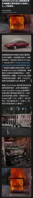 心得:福特1979年的概念車 probe I ,在運送過程中,意外被燒光光了,剛好在華人的七