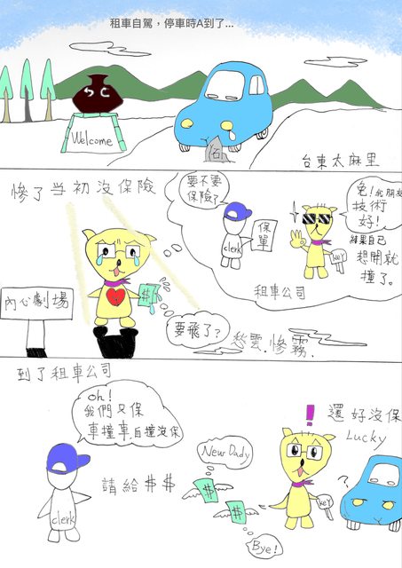 還車時,店員卻說,他們只保「車撞車」,自撞沒保。