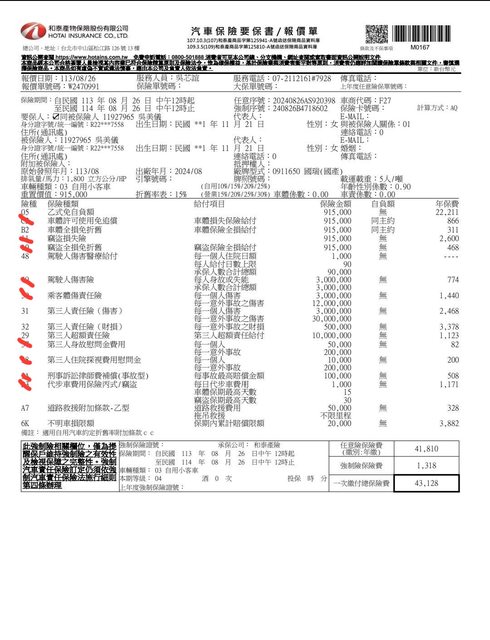 與業務約定保乙式,竊盜確定不保,本身自己有保意外險,車子的不考慮重複保,還請先進們幫忙看看謝謝。