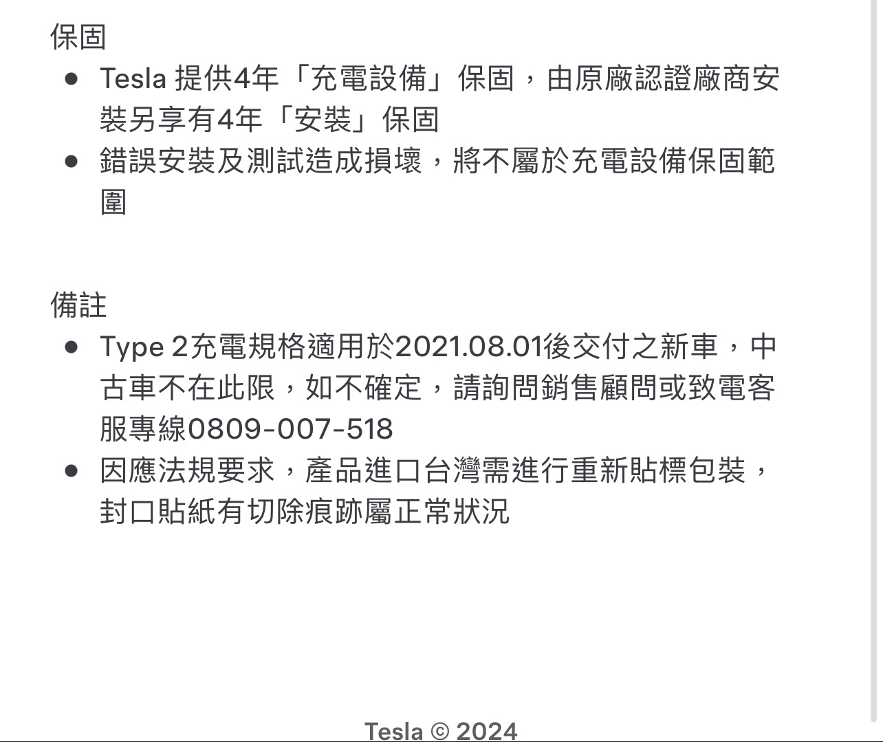 → lineage20823: Tesla 提供4年「充電設備」保固,由原廠認證廠商安 09/06 13:45