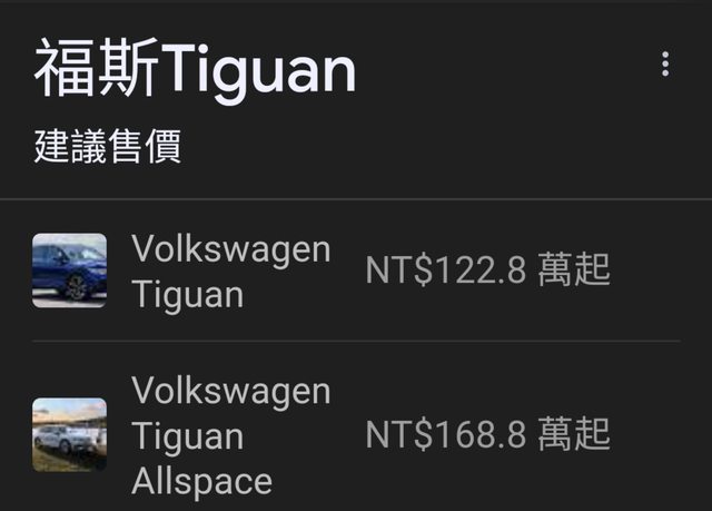 推 Eos: 中國Tiguan當地生產的吧 台灣還進口 09/06 23:20