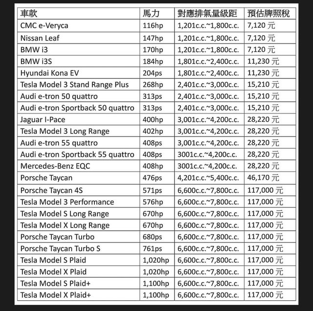 → DongRaeGu: 其實我覺得馬力課稅都不合理 應該按照油耗、電耗課稅 09/23 12:27