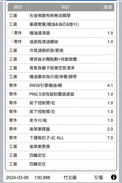 推 ader888: 機油自備、空濾冷濾自己買自己換:10K 2137, 20K 4553, 3 09/23 19:44