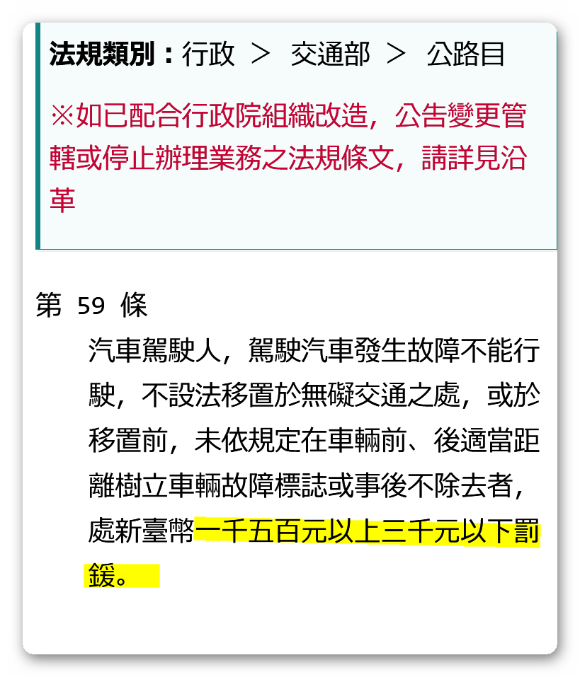 推 MK47: 查了一下 沒放三角錐最多罰三千 真的不要下車跟賭命 09/26 17:54