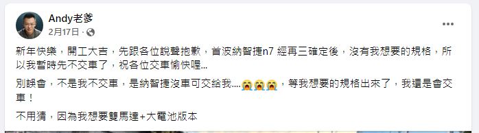 推 QuentinHu: 沒有說雙馬達好嗎,只有說長續航 09/30 18:42