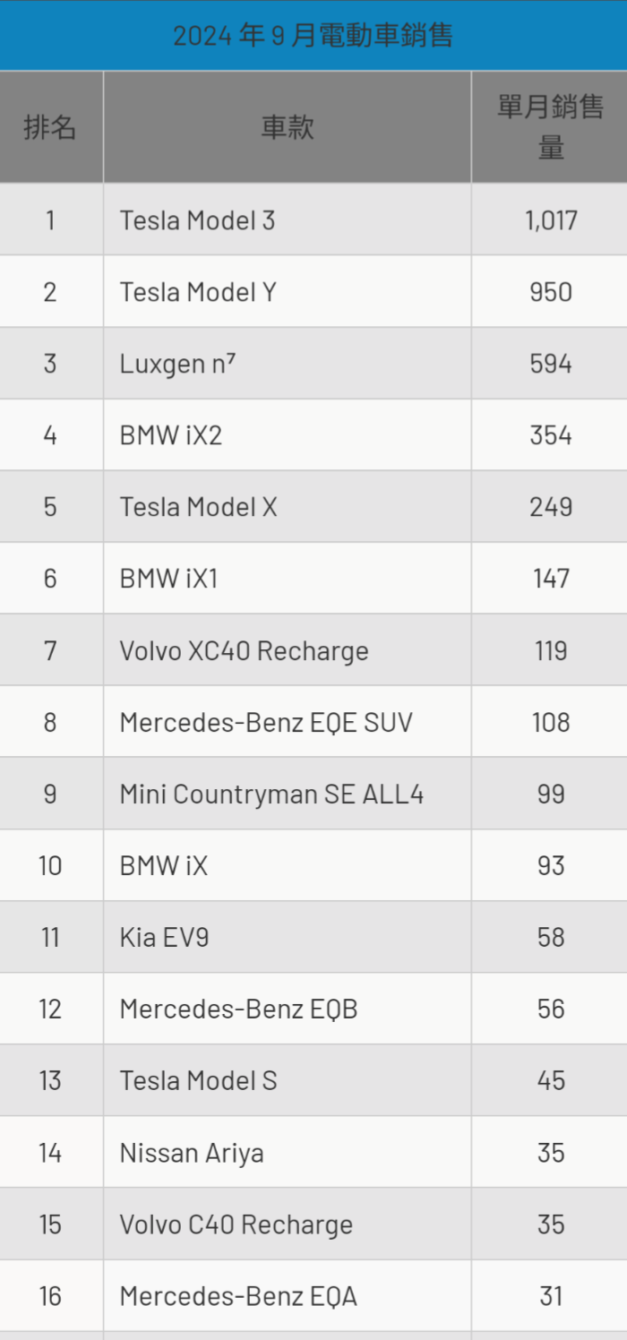 → everfit: 電車今年迄今銷售:特斯拉11701輛,BMW4916輛,賓士1862輛10/10 11:24