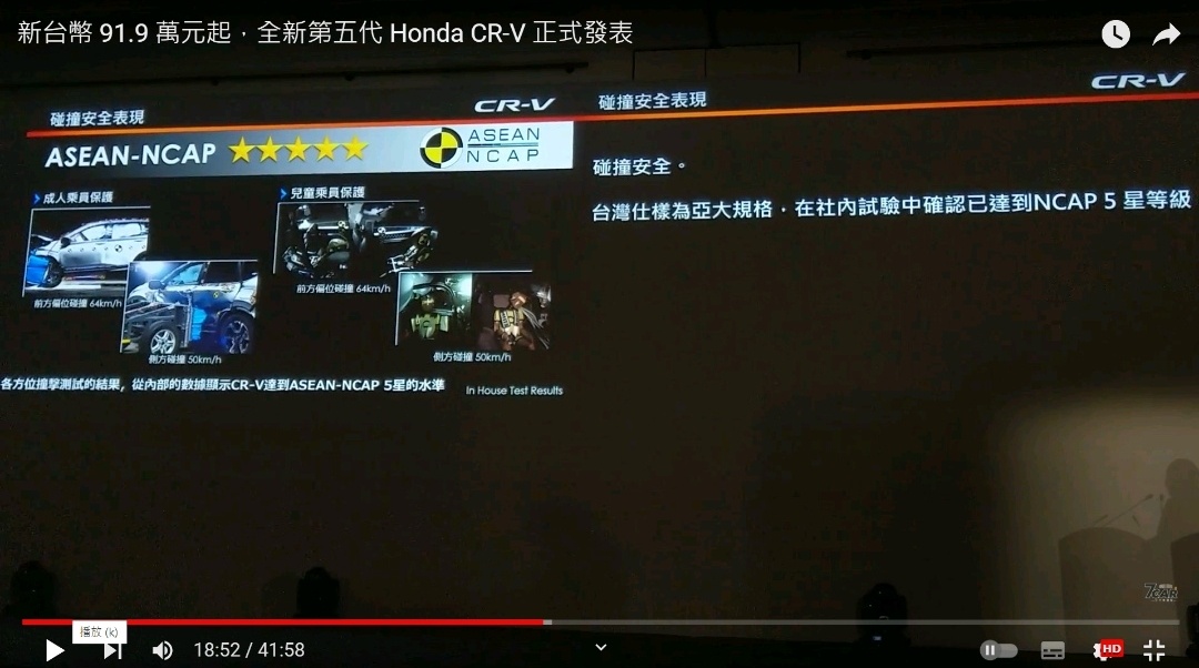 推 davidtoldyou: 但是東南亞規CRV測新法規確5星,台灣特規測寬鬆的 10/10 09:38
