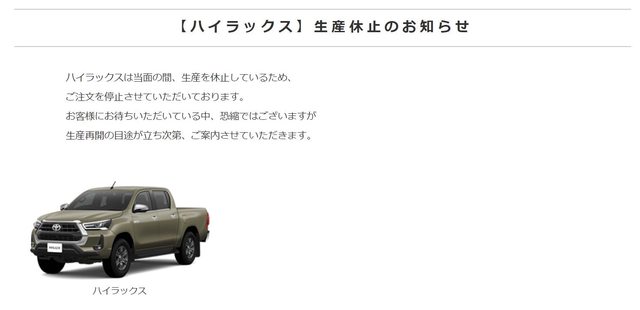 表示只是暫停生產、銷售,未來待產線穩定之後,日本TOYOTA Hilux將恢復正常供應。
