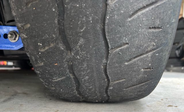 現況:內側因為camber角導致內側磨完、我下雨天可能就先停車了XD