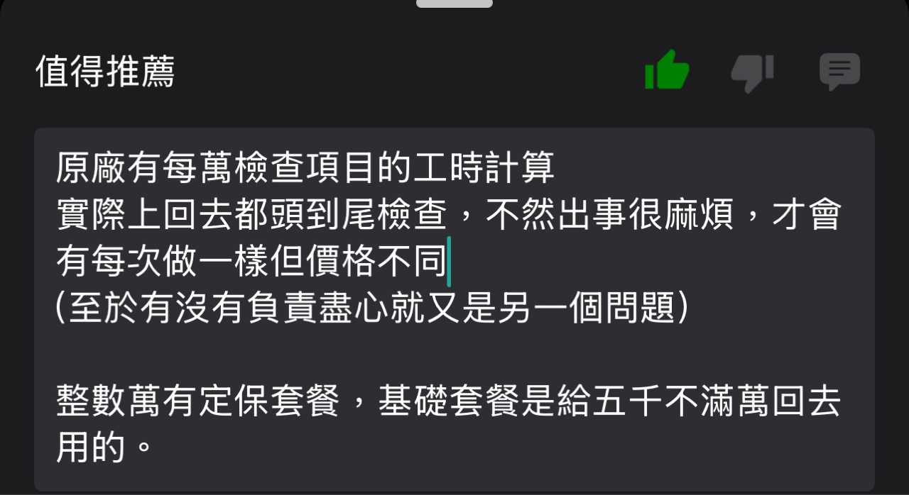 推 elg4286: 單雙萬的工單檢查項目不一樣,保養廠沒給你一份嗎 04/12 19:02
