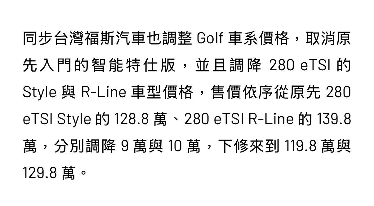 標題Re: [新聞] VW Golf(MK8.5)小改款預售開跑