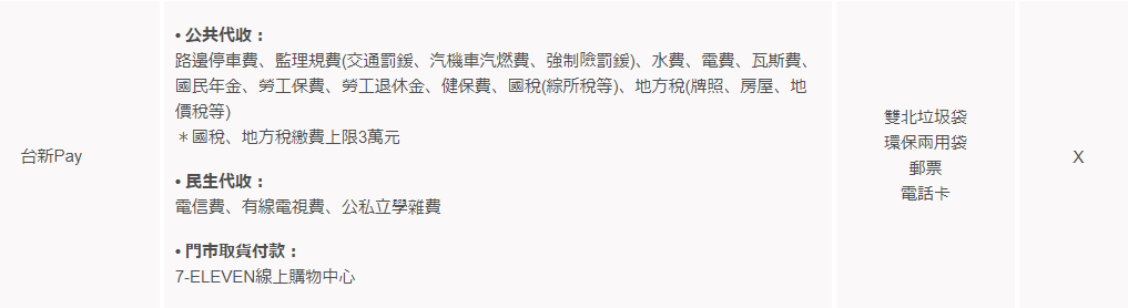 → Sheng98 : 代收的項目 (台新 pay) 08/20 17:06