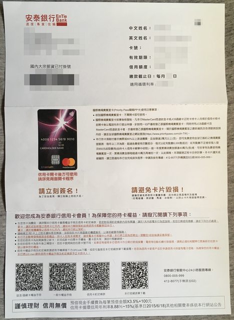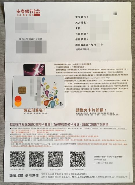 感謝安泰銀行核卡。