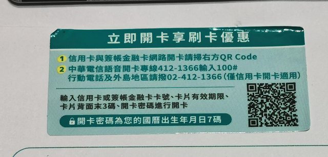 卡上的開卡小貼紙寫這樣