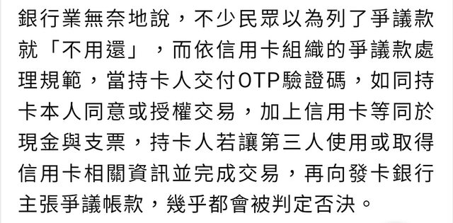 → Klauhal : 自己OTP授權還要銀行背鍋,千錯萬錯都是別人的錯耶09/09 10:50