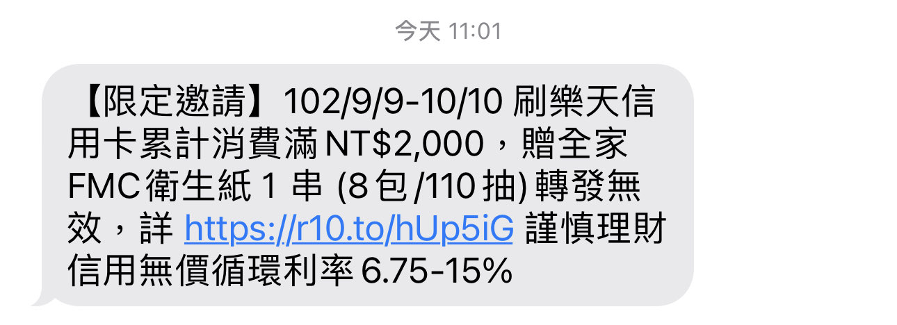 推 taihao : 不早點傳,剛刷完1筆機車險快3000....才收到簡訊shi 09/09 14:34