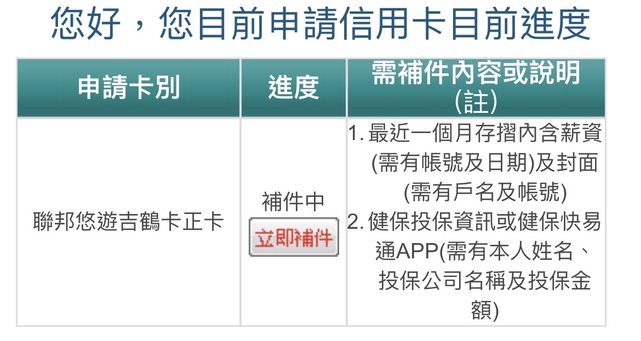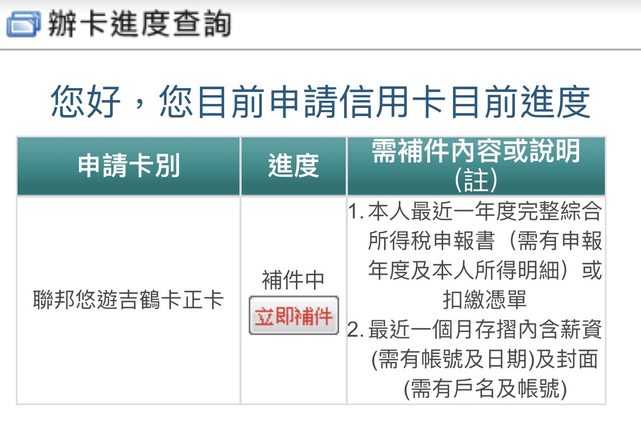 但目前申辦進度還是停留在補件中