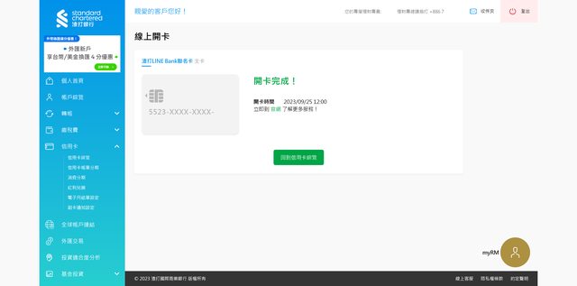 (09/21核卡,過一晚系統跑檔完,隔天出現新卡號) 2023/09/22 上午10:00稍晚:https://i.imgur.com/v6vP7fD.png