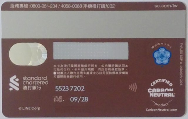 熊大 渣打LINE Bank聯名卡反面:https://i.imgur.com/q2GRutM.jpg