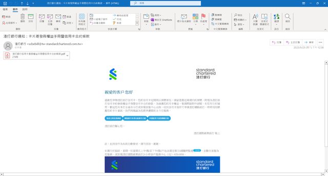 (我有三張渣打卡,一張卡一封通知信,信件內容都相同,只差在PDF文件內容不同) 直接轉帳生效通知(4258-):https://i.imgur.com/m32bMnR.png
