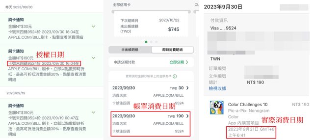 → TZUYIC : 筆金額不同、日期也不同的授權扣款。 10/01 23:04