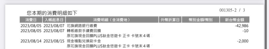 → iueeng : 三樓的貼圖可以看那筆現金點數轉成刷卡金-2000是否 10/09 07:46