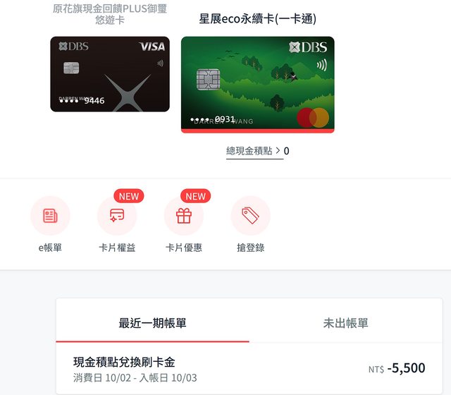 → iueeng : 原po貼圖 除了花旗卡還有一張星展ceo永續卡,既有 10/09 07:49