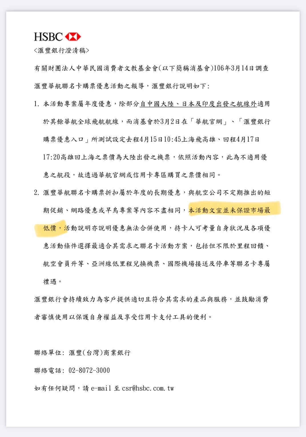 噓 tequila2 : 當年華航卡還在滙豐手上時還發過這樣的新聞稿 10/29 05:39
