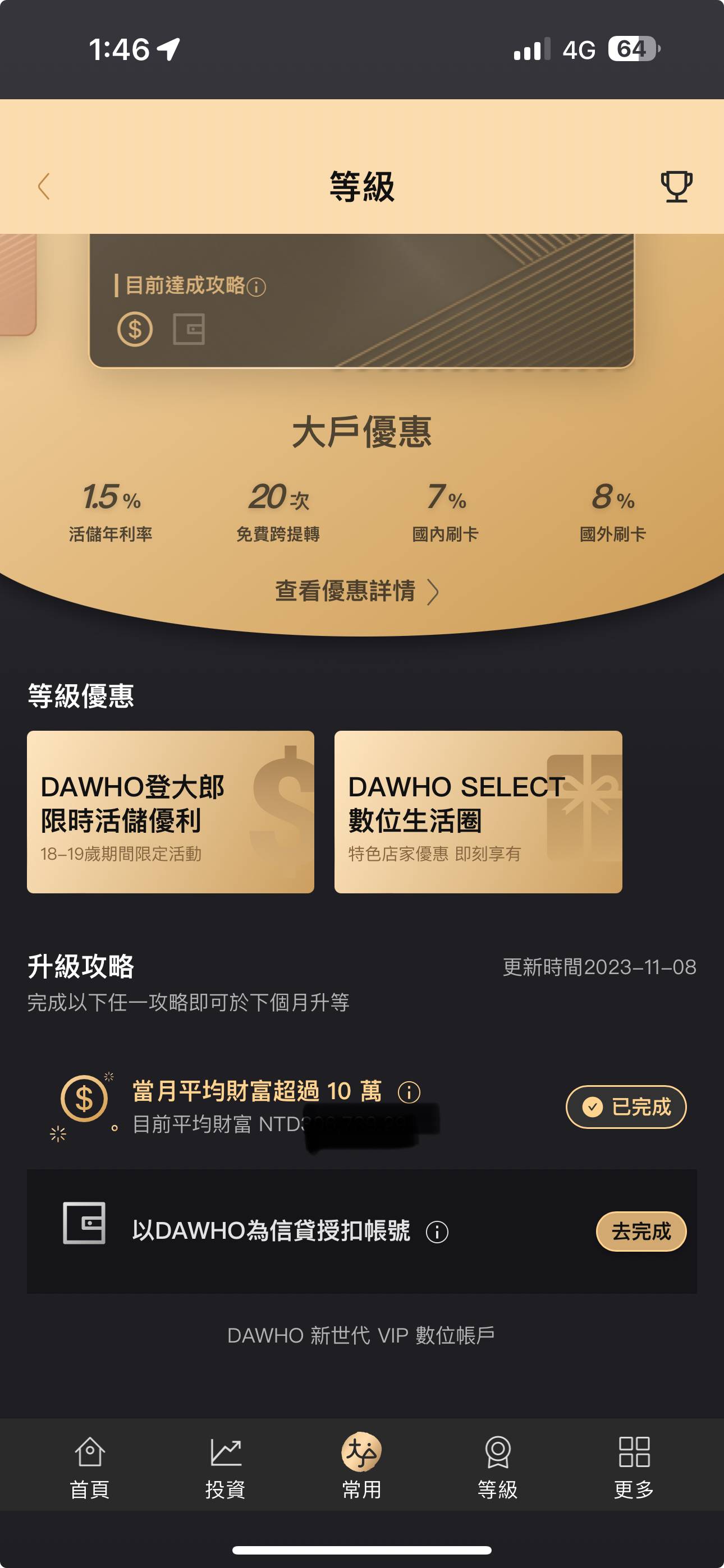 才發現官方好像有說戶頭有十萬元 才會從大大等級變大戶
