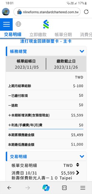 推 van0422 : 渣打現金回饋御璽卡被我幫了每月自扣100*2,結果這 11/29 11:29