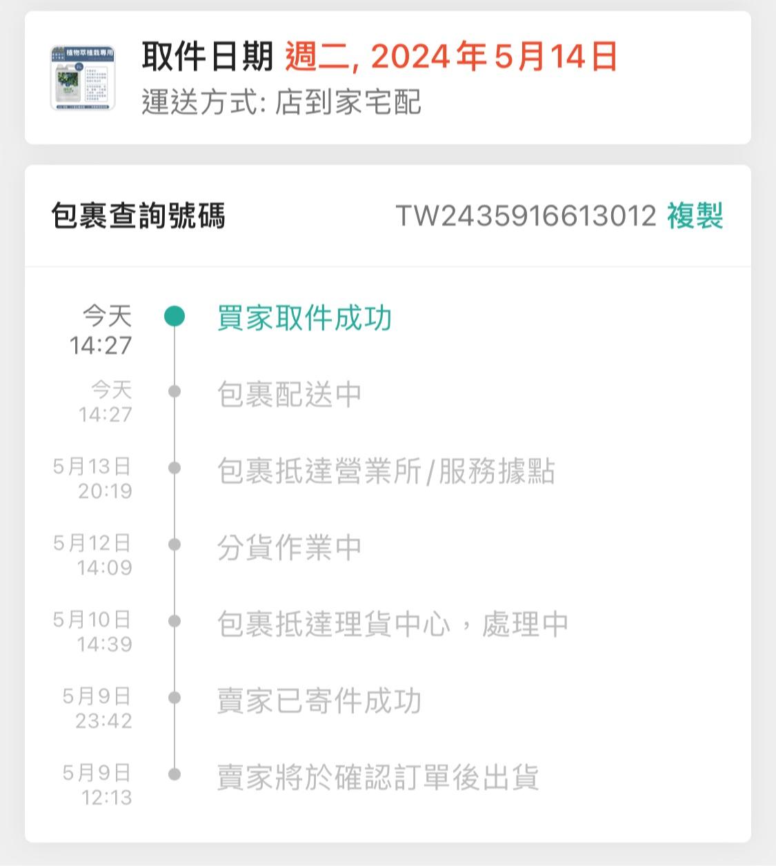 推 tinallll: 店到家宅配很雷+1店家寄出到收到宅配花223.137.185.153 05/10 23:35