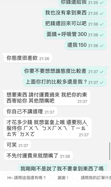 → dryat: 你一開始就用質問的語氣,難怪賣家這種態 1.170.233.72 05/31 01:29