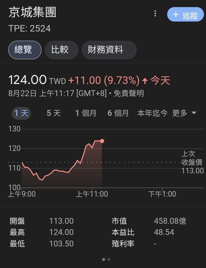 → tctv2002: 京城現在不是漲停嗎? 08/22 11:14