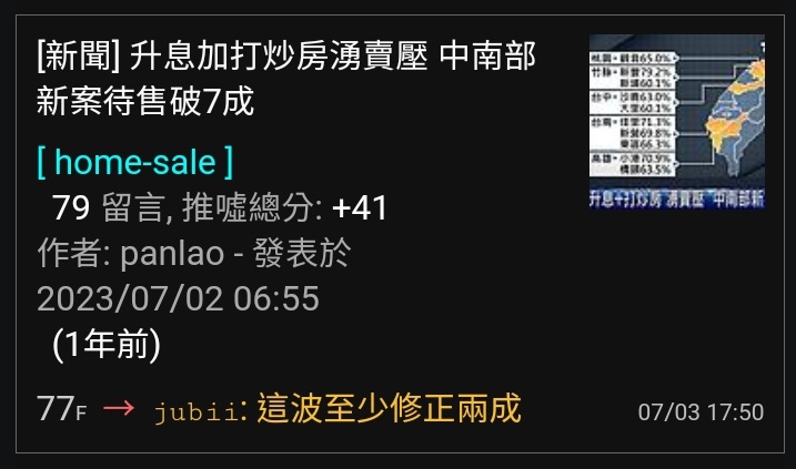 → jubii: 大哥 房市是長週期的 別急嘛 才一年就在咆哮了08/22 11:32