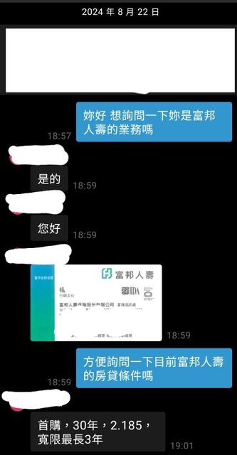 推 dika: 可以請富邦人壽業務找我嗎?有新竹市要首購貸款 08/22 20:31