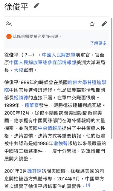 中國人民解放軍有個叫徐俊平的軍官叛逃美國