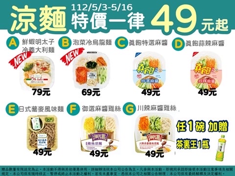 → ashkaze: 特價還要49元起?已經很多年沒吃涼麵了 114.27.34.176 05/03 14:13