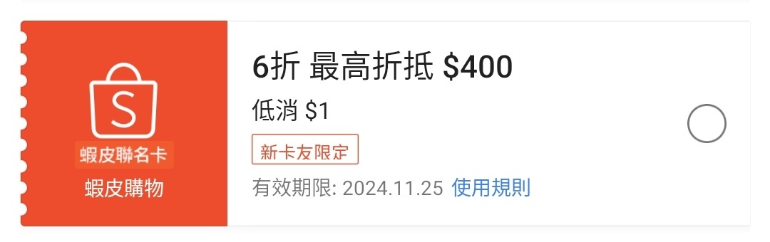 推 Wooderman: 請問樓上聯名卡-400的券要去哪裡找? 1.200.129.193 10/25 18:13