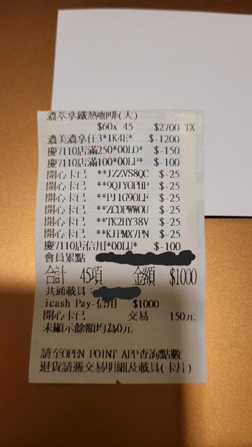 推 Wooderman: icashpay滿1000-100是每會員限折3次, 112.78.95.32 11/07 11:12
