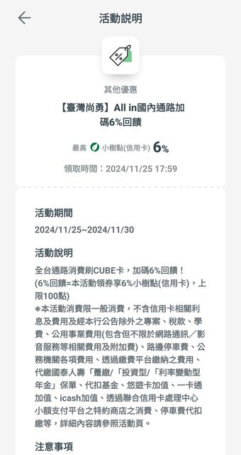 推 sbtiagr: 一般消費全部給6%,詳閱了這活動的注意114.136.241.210 11/25 20:14