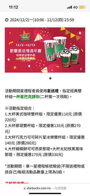 推 snownow: 誒不對,主圖面有寫一杯星巴克請你…這樣 42.79.14.144 12/05 19:34