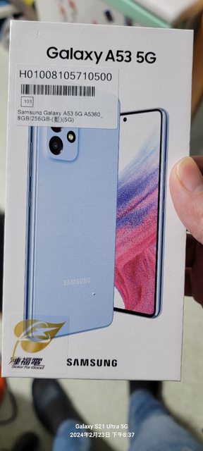 欲售物品:samsung A53 256g 藍色 物品狀況:二手 購買來源:台灣大哥大 NCC 認證:CCAH225G0010T1 盒裝內含:手機 購買日期:2023.1 保固日期:過保 欲售價格:NT$ 5000 交易方式:面交/寄送 實品圖片:
