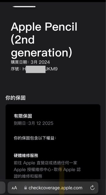 標題[賣/全國/皆可] Apple Pencil 2 保固中
